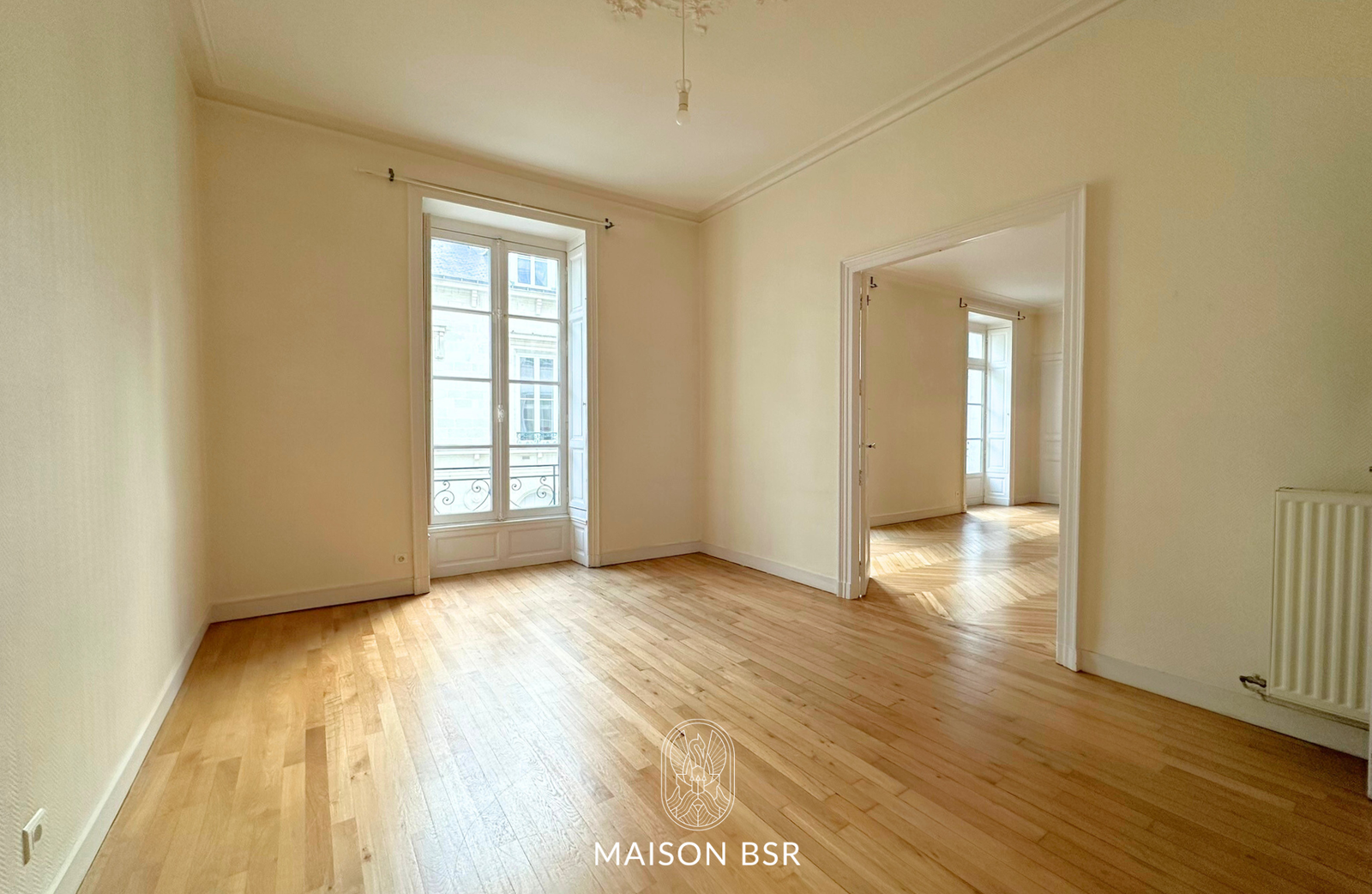 Dans un bel immeuble ancien, cet élégant appartement situé au 1er étage séduit par son charme et ses beaux volumes. Il comprend une entrée, un séjour avec parquet et cheminée, une cuisine indépendante aménagée et équipée, ainsi que deux vastes chambres d'environ 18 m² chacune.