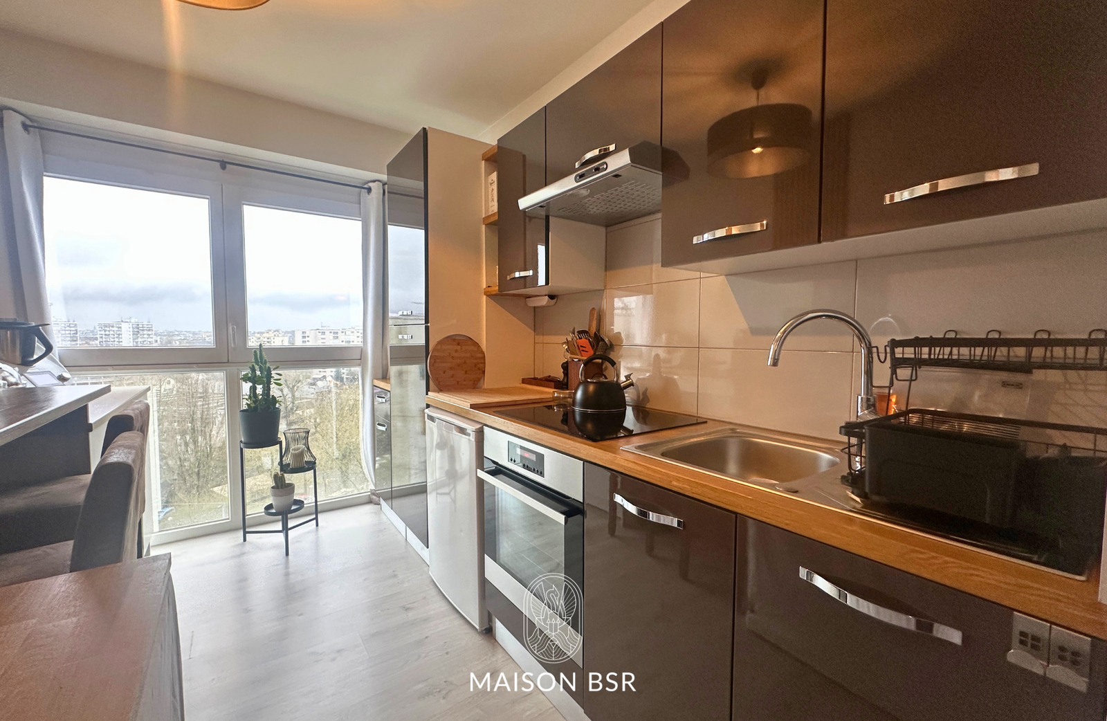 L'espace de vie intègre un coin cuisine aménagé et équipé et s'ouvre sur le véritable atout de cet appartement : une loggia de 12 m². Entièrement modulable, cet extérieur peut s'ouvrir ou se fermer selon vos besoins et les saisons, vous offrant ainsi une véritable pièce supplémentaire au quotidien.