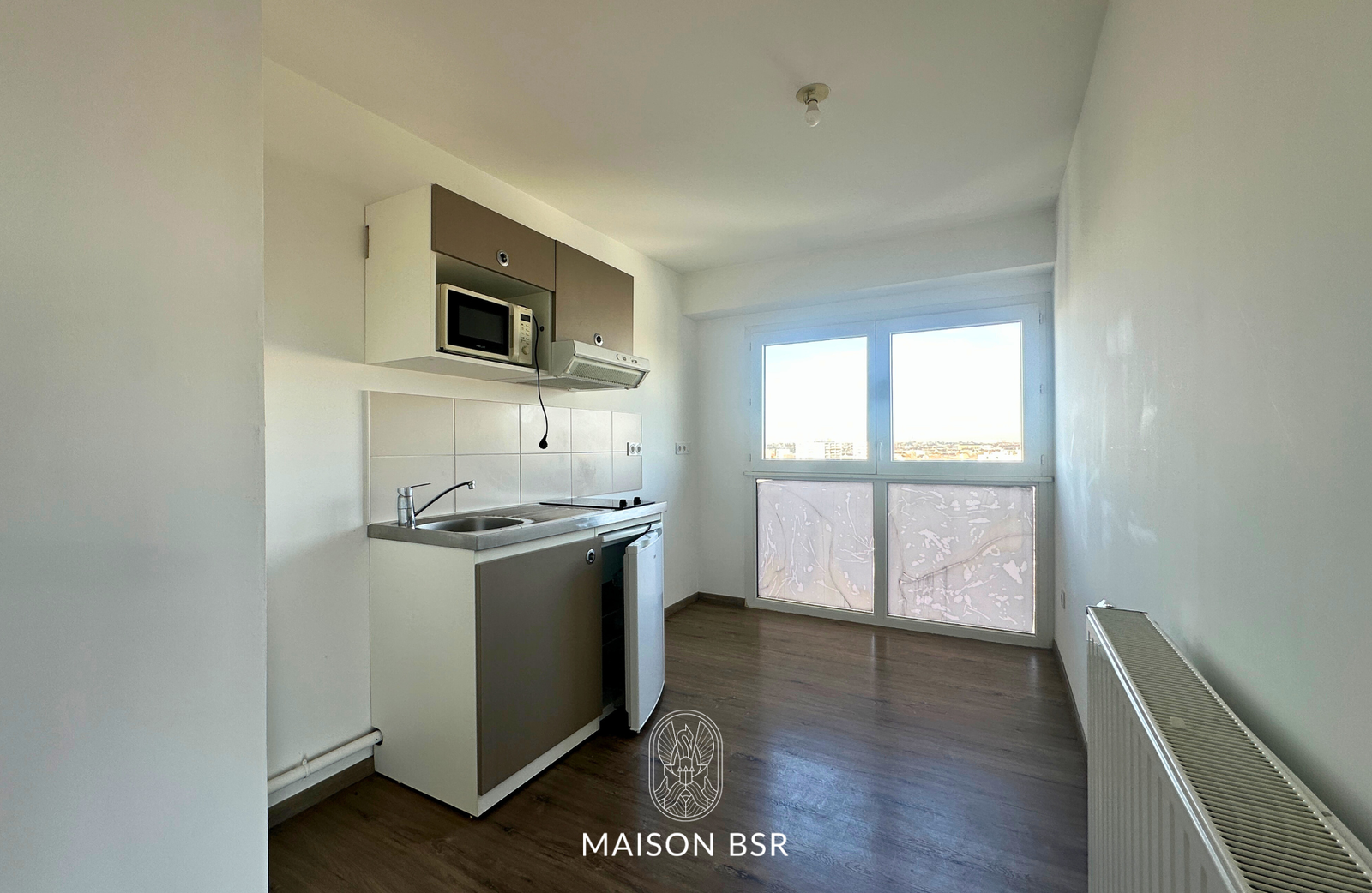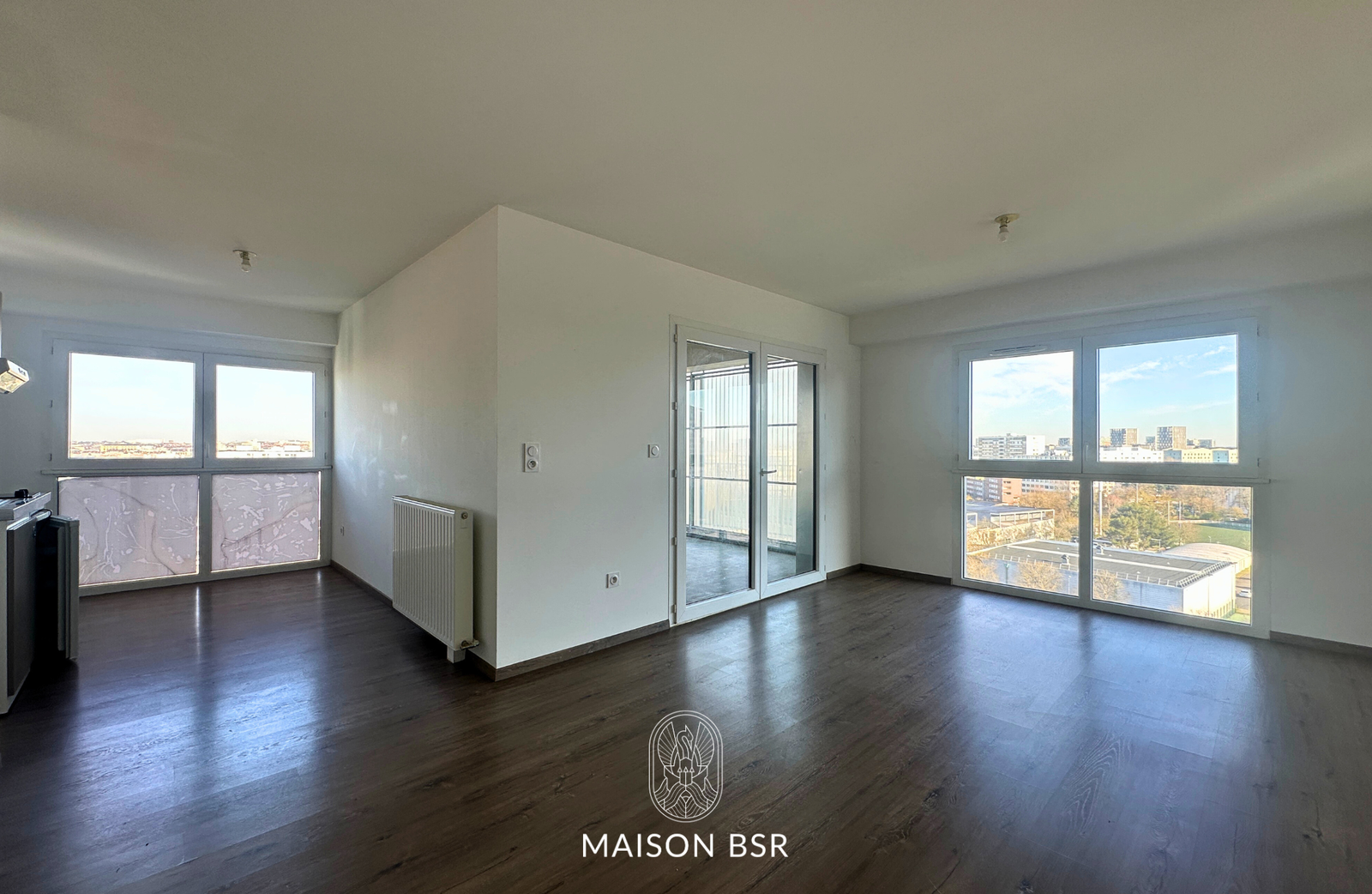 L'espace de vie intègre un coin cuisine à aménager et s'ouvre sur le véritable atout de cet appartement : une loggia de 19 m². Entièrement modulable, cet extérieur peut s'ouvrir ou se fermer selon vos besoins et les saisons, vous offrant ainsi une véritable pièce supplémentaire au quotidien.