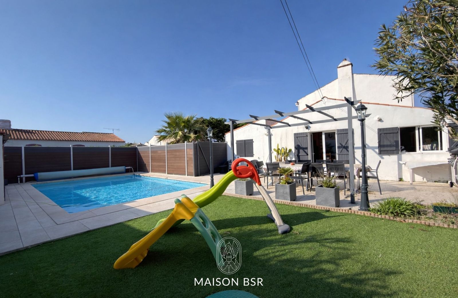 Une piscine de 7 x 4 m permet de profiter pleinement des extérieurs.